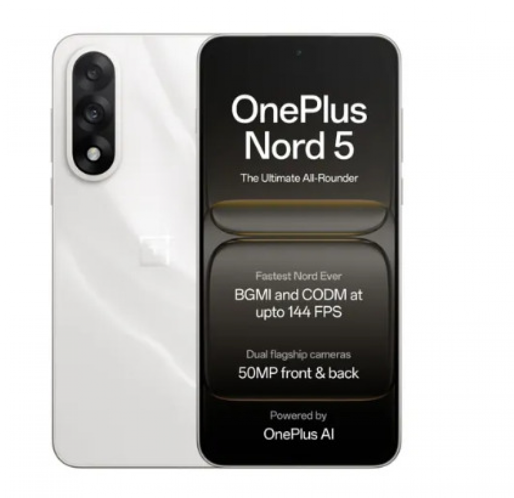 Oneplus Nord 5 5G (8GB RAM, 256GB Storage) Dry Ice | Snapdragon 8s Gen 3 | 6800 mAh Battery | Lifetime Display Warranty