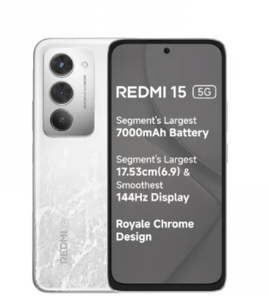 Redmi 15 5G (8GB RAM/128GB Storage) Frosted White | Snapdragon 6s Gen 3 | 7000mAh Battery with 33W Fast Charging | 50MP AI Dual Rear Camera